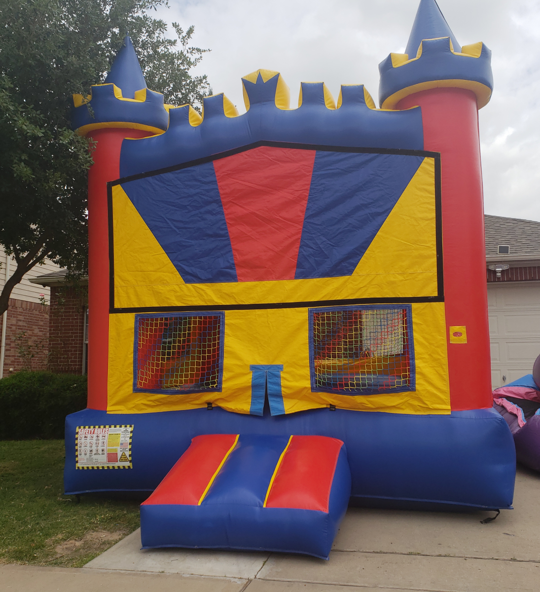 Royal Castle (2) 6 ft. rectangular tables (16) white plastic foldable chairs